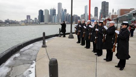 | Keywords: Pearl Harbor Day 081205-N-IK959-133.jpg en A ceremonial honor rifle squad from Naval Station Great Lakes stand by to fire a 21-gun salute to Pearl Harbor Day before a wreath laying at Navy Pier for the Mayor and City of Chicago's 19th annual Pearl Harbor Remembrance Day The event organized by the Chicago Commission on Human Relations Advisory Council on Veterans Affairs and the Mayors Office of Special Events also included veterans and representatives from the Veteran's Administration and current military service members assigned to Great Lakes Naval Station U S Navy photo by Scott A Thornbloom/Released Unit Defense Imagery Management Operations Center DVIDS Tags Chicago; Naval Station Great Lakes; DIMOC; Ill ; Pearl Harbor Remembrance Day; rifle squad; DVIDS Bulk Import 2007-11-05 Scottt Thornbloom https //www dvidshub net/image/1492915/pearl-harbor-day 081205-N-IK959-133 2014-08-09 01 01 CHICAGO IL US PD-USGov-Military-Navy Naval Station Great Lakes Images from DoD uploaded by Fæ |