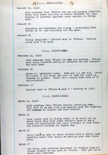 | Keywords: pearl harbor pearlharbor attack december 7 1942 december71942 world war two worldwartwo document text screenshot Document from the Pearl Harbor Dispatch Special Collection which details the attack and the days following it. Repository: San Diego Air and Space Museum Archive Document from the Pearl Harbor Dispatch Special Collection which details the attack and the days following it. Repository: San Diego Air and Space Museum Archive | ||||