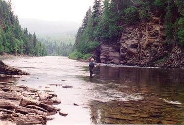 Keywords: PecheurSaumonDarmouth.jpeg Pêcheur au saumon sur la rivière Darmouth w Gaspé ville Gaspé fr Québec Salmon fishing on the Darmouth River w Gaspé Quebec Gaspé Quebec own R Rancourt 1991 Fly fishing Gaspé Rivière Dartmouth