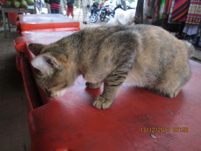 Keywords: Peculiar short tailed cat at'Tiger Woods' restaurant binside Angkor Wat complex..JPG en A beautiful cat in the Angkor Wat complex near the tourist restaurants own Rudolph A Furtado Friday 13- 12-2013 Cc-zero Angkor Wat