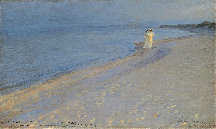 Keywords: Peder Severin Krøyer - Summer evening at the South Beach, Skagen. Anna Acher and Marie Krøyer - Google Art Project (TQFsU4zCe rZTA).jpg commons artist commons date commons medium commons dimensions commons institution commons location commons references commons object_history commons exhibition_history commons credit_line commons inscriptions commons notes commons accession_number commons source commons permission commons other_versions commons zoom core title en Summer evening at the South Beach Skagen Anna Acher and Marie Krøyer core creator Peder Severin Krøyer core date dateCreated 1893 core format w45 8 x h27 8 cm core type Painting art artist_date 1851-07-23/1909-11-21 art artist_death_place Skagen art artist_nationality Danish art artist_birth_place Stavanger google display_date 1893 google is_gigapixel FALSE google is_secured TRUE google street_view_asset/id lwEgERUyFH0hqg google street_view_level/id 11879728161999947185 google street_view_location 55 689926147460938 12 577588081359863 1 0900000333786011 1VQw2hqD_u5DkArzyABjcA google partner/id 0000000001854db2 google is_artproject TRUE google picasa_token dbRT06RHGLBg7X4DjemdVUl5qKw special url_id TQFsU4zCe_rZTA google partner/name The Hirschsprung Collection special partner/name_no_lang The Hirschsprung Collection PD-old-100-1923 1909 Google Art Project works by Peder Severin Krøyer Summer evening at the South beach of Skagen by Peder Severin Krøyer |