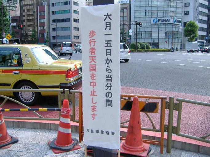 | Keywords: Pedestrian precinct shall be discontinued for the time being from June 15.JPG en Tokyo Metropolitan Police signboard Pedestrian precinct shall be discontinued for the time being from June 15 ja 警視庁の 6 15日から当分の間歩行 天国を中止します I took this photo 人撮影 Abasaa あばさー 2008-06-14 Akihabara massacre Tate-kanban Akihabara pedestrian zone 2008 in Akihabara Black red white signs Black and red letter signs in Japan 2 rows vertical signs in Japan | ||||