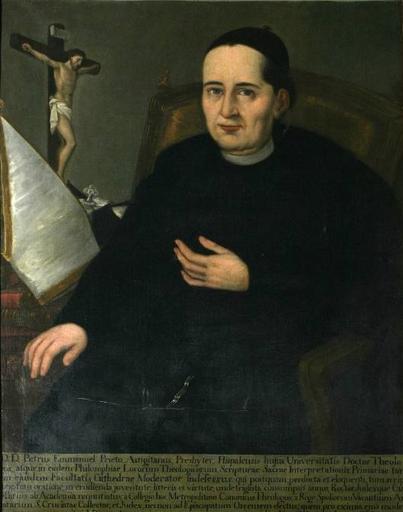 | Keywords: Pedro Manuel Prieto, rector de la Universidad de Sevilla (Universidad de Sevilla).jpg El retratado que fue rector de la Universidad de Sevilla España entre 1799 y 1802 aparece vestido con sotana y sentado junto a una mesa en la que hay una mitra y un crucifijo 1822 oil canvas Size cm 79 103 Institution Universidad de Sevilla http //www patrimonioartistico us es/objeto jsp id 721 tipo v elto 3 buscando true repetir true object history exhibition history credit line accession number 0719-00-REC-PINT http //www patrimonioartistico us es/objeto jsp id 721 tipo v elto 3 buscando true repetir true PD-old-100 Uploaded with UploadWizard Pedro Manuel Prieto Colección Galería de Retratos de Rectores Universidad de Sevilla José María Arango 1822 paintings |