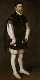 | Keywords: Pejeron Mor.jpg Painting Creator Anthonis Mor `Pejerón ' The Jester of the Count of Benavente and the Grand Duke of Alba The work is listed in the 1600 inventory of Madrid's Alcazar Palace as Pejerón the madman of the Count of Benavente with white stockings and jerkin and a deck of cards in his right hand It was kept in the Treasury Mor probably made this work during his last visit to Spain in 1559 The jester appears full-length standing with a dark background and no spatial references As he occupies all available space in the foreground it is difficult to know his true height He is sumptuously dressed in courtly clothing and only his large head short legs and deformed hand ”the cards it holds symbolize leisure ” bear witness to his condition and occupation the art of jest c 1560 Oil on panel cm 185 93 5 Institution Prado http //www museodelprado es/enciclopedia/enciclopedia-on-line/voz/moro-antonio-anton-van-dashorst-mor/ no_cache 1 Prado other versions PD-old-100 DEFAULTSORT 1560c; Pejerón the Jester Anthonis Mor 16th-century portrait paintings in the Prado Museum Los truhanes 16th-century oil on panel paintings 16th-century oil portraits of standing men at full length Doublet clothing Files uploaded by Shakko from various sources Jerkin Male white shoes in portrait paintings Playing cards in art Pluderhose Portrait paintings of men wearing black berets Three-quarter view portrait paintings of men facing right |