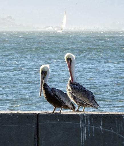 Keywords: pelican bird brown pelican pelecanus pelecanus occidentalis bay water wildlife san francisco america usa