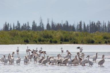 Keywords: pelicans american white birds water wading waterfowl wildlife nature seabird bill standing