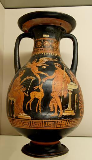 | Keywords: Pelike fawn BM F315.jpg Psalterion 001 jpg British Museum Tarrytown Group A woman holding a harp Eros and a youth with a fawn Apulian red-figured pelike ca 320 “310 BC From Anzi Femme tenant une harpe Éros et un jeune homme au faon Pélikè apulien à figures rouges vers 320-310 av J -C Provenance Anzi credit line Former collection of Antoine-Edme Durand accession number GR 1836 2-24 142 Cat Vases F 315 Upper floor room 73 The Greeks in Southern Italy Jastrow 2006 Eros in ancient Greek pottery Apulian red-figure pottery Ancient Greek pottery in the British Museum Durand Collection Pelikai Tarrytown Group Harps in art Room 73 British Museum |