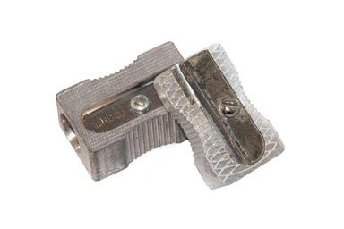 Keywords: pencil sharpener pencil sharpeners supplies office school supplies old metal cut-out on a white background