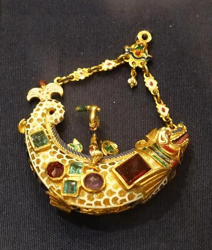 Keywords: Pendant in the shape of a dolphin, 1550-1600 AD, gold, enamel, precious stones - Museo Nacional de Artes Decorativas - Madrid, Spain - DSC08022.JPG en Exhibit in the Museo Nacional de Artes Decorativas Madrid Spain This work is in the public domain because the artist died more than 100 years ago Photography was permitted in the museum without restriction 2014-10-10 06 08 18 own Daderot other versions PD-100 cc-zero Metalwork in Museo Nacional de Artes Decorativas Uploaded with UploadWizard |