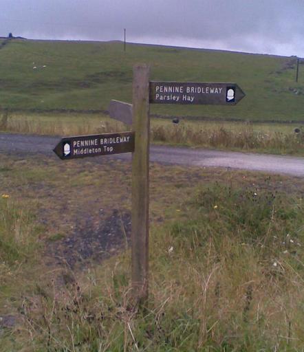 | Keywords: Pennine Bridleway signpost.jpg Photo of the Pennine Bridleway signpost near Parsley Hay Taken by me and released to the Public Domain 2007-08-20 own assumed Hogyn Lleol Tissington trail Fingerposts in Derbyshire Pennine Bridleway Hiking and footpath fingerposts |