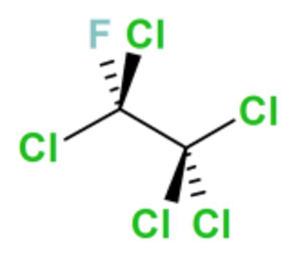 Keywords: Pentachlorofluoroethane.png chemical The structure of Pentachlorofluoroethane own work ISIS/Draw 2 5 --> MS Paint --> Infan View BorisTM Pentachlorofluoroethane