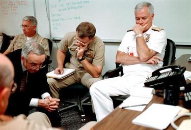 Keywords: Pentagon on 9.11 - meeting2.jpg 010911-N-5636P-001 Sep 11 2001-- The Honorable Gordon England Secretary of the Navy left Rear Admiral Christopher Weaver center Commandant Naval District Washington and Vice Admiral Timothy Keating right Deputy Chief of Naval Operations for Plans Policy and Operations lean closer to the phone as the first damage assessment reports from the Pentagon come in just hours after the terrorist attack on Sep 11 2001 The Secretary was in Texas at the time of the attack and immediately returned to Washington where he was taken to an undisclosed location to be briefed 010911-N-5636P-001 Navy http //www navy mil/management/photodb/photos/010911-N-5636P-001 jpg 2001-09-11 U S Navy Photo by Chief Photographer's Mate Dolores L Parlato <gallery>Image Pentagon on 9 11 - meeting1 jpg</gallery> PD-USGov-Military-Navy original upload log wikitable date/time username resolution size edit summary ---- 13 53 25 May 2007 User Nickel Chromo 2 100×1 433 1 5 MB <nowiki> <span class comment > 010911-N-5636P-001 Sep 11 2001-- The Honorable Gordon England Secretary of the Navy left Rear Admiral Christopher Weaver center Commandant Naval District Washington and Vice Admiral Timothy Keating right Deputy Chief </span></nowiki> ImageNote 1 202 420 344 433 2100 1433 2 SECNAV Gordon Richard England ImageNoteEnd 1 The Pentagon on 9/11 2001 photographs Photographs of sitting men Emotions Brainstorming Resting arms People of the United States in 2001 Gordon R England Military people in 2001 Timothy J Keating Male soldiers Sitting with hand on head September 2001 photographs |