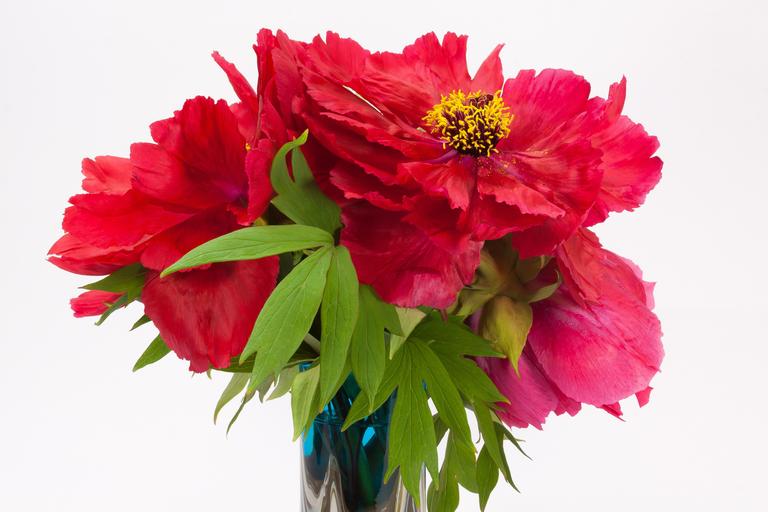Keywords: pentecost peony flower nature flora spring blossom bloom ornamental plant pink red green leaf double flower lush vase turquoise blue