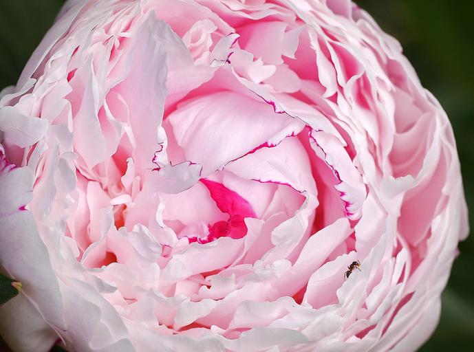 Keywords: peony ant lush petals ball pink white rose macro blossom bloom flower close