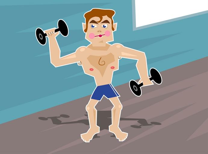 Keywords: people man men male adult person caucasian cartoon fit fitness strong strength recreation leisure gym weights lifting