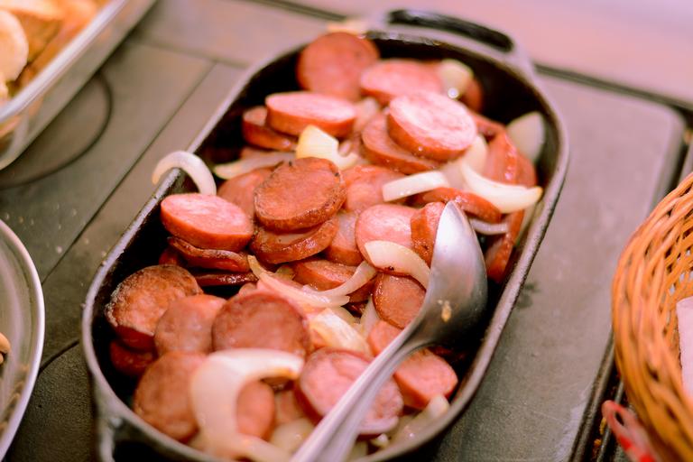 Keywords: pepperoni fried onion meat eat tasty meal food fast food delicious fried onion lunch power supply restaurant gastronomy delight calorie