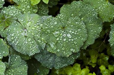 Keywords: perennial plant frauenmantel rain spring drop of water green leaves ground cover