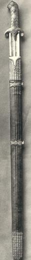 Keywords: Persian Sword with Curved Hilt.jpg Persian Sword with Curved Hilt Pałasz perski z karabelową rękojeścią Ivory silver Object history Catalogue of stolen and missing cultural achievements / comp Jan Świeczyński; Ośrodek Informacyjno-Koordynacyjny Ochrony Obiektów Muzealnych Warsaw 1988 Editor Wojciech Jaskulski Piotr Ogrodzki See also http //kolekcje mkidn gov pl/katalog/podglad ID 10953 Department of National Heritage Wartime losses an official webpage of Polish Ministry of Culture Art and National Heritage century 18 author Other versions Photo Photo Polish Ministry of Culture Art and National Heritage author < 1939 PD-Polish Anonymous-EU Militaria lost in Poland during World War II Safavid metalwork |