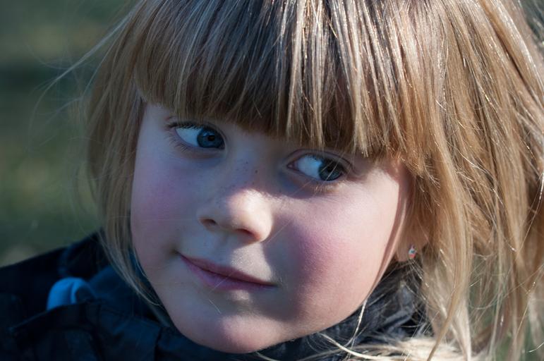 Keywords: person human child girl blond face eyes view portrait close