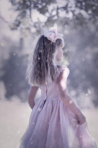 Keywords: person human child girl blond long hair dress out nature reverie fantasy portrait