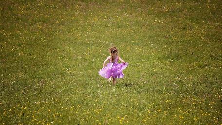 Keywords: person human child girl blond long hair dress barefoot meadow flower meadow nature out