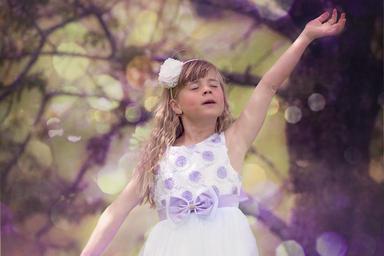 Keywords: person human child girl dress face blond long hair dance in motion out nature portrait