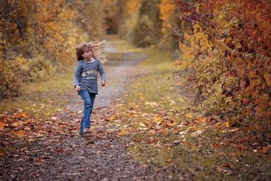 Keywords: person human female child girl away out nature run leaves autumn portrait in motion