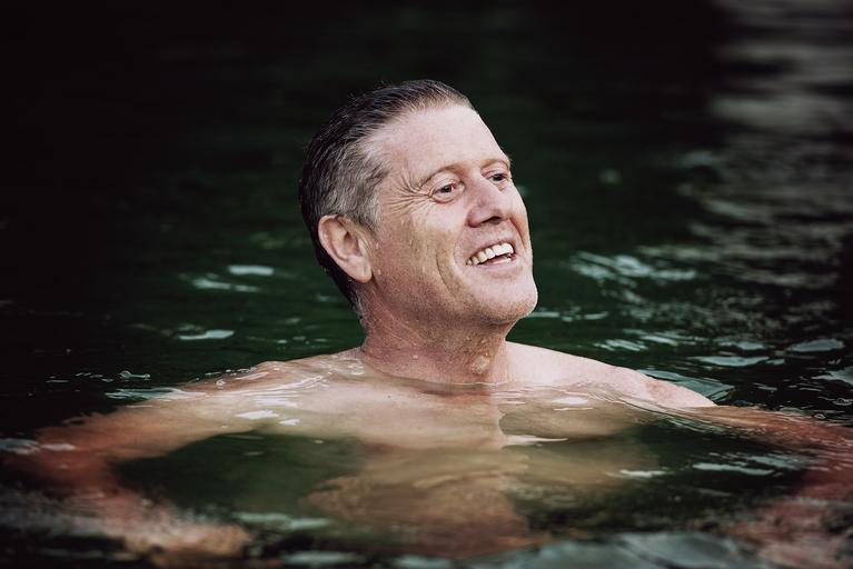 Keywords: person human man swim cool down water wet twilight natural bathing lake badesee cooling portrait