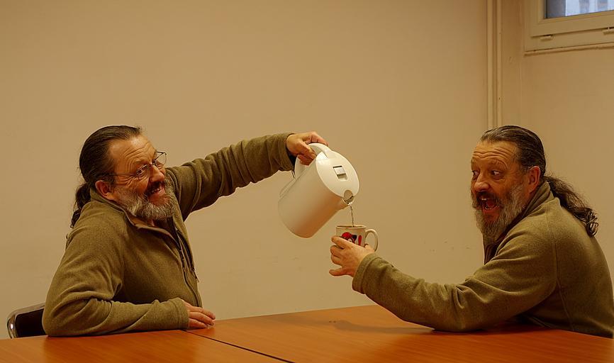 Keywords: person man coffee photomontage beard
