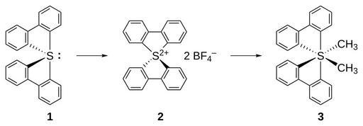 Keywords: Persulfurane synthesis.svg Reaction scheme of the synthesis of all-carbon persulforane Selfmade with ChemDraw 2006-09 Calvero PD Chemical reactions