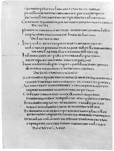 Keywords: Pervigilium Veneris codex S page 5.png Pervigilium Veneris in codex S the famous Codex Salmasianus Pervigilium Veneris in Codex S dem berühmten Codex Salmasianus Scanned from the facsimile print in the edition of Sir Cecil Clementi Pervigilium Veneris The Vigil of Venus 3rd edition Oxford Blackwell 1936 Writer of the codex unknown Author of the poem Pervigilium Veneris unknown probably Tiberianus Scanned by Aristeas Schreiber der Handschrift unbekannt Dichter des Pervigilium Veneris unbekannt wahrscheinlich Tiberianus Gescannt von Aristeas century 4 poem ; century 7 or century 8 manuscript <gallery> File Pervigilium Veneris codex S page 1 png 1st text page in codex S File Pervigilium Veneris codex S page 2 png 2nd text page in codex S File Pervigilium Veneris codex S page 3 png 3rd text page in codex S File Pervigilium Veneris codex S page 4 png 4th text page in codex S </gallery> PD-Art-100 ImageNote 1 727 556 501 141 2751 3661 2 Headline De Thetide Poem on Thetis ” Anthologia Latina no 201 ed Riese no 192 ed Shackleton Bailey ImageNoteEnd 1 ImageNote 2 715 874 764 141 2751 3661 2 Headline De luco amoeno Poem on a beautiful place ” Anthologia Latina no 202 ed Riese no 193 ed Shackleton Bailey ImageNoteEnd 2 ImageNote 3 734 1198 1693 128 2751 3661 2 Headline In Anclas; in salutatoriu m d omi n i regis ” a poem by Luxorius Anthologia Latina no 203 ed Riese no 194 ed Shackleton Bailey ImageNoteEnd 3 ImageNote 4 764 1705 1186 128 2751 3661 2 Headline De Servando medico ” Anthologia Latina no 204 ed Riese no 195 ed Shackleton Bailey ImageNoteEnd 4 ImageNote 5 721 3013 911 177 2751 3661 2 Headline De Casteliano the text of this poem follows on the next page ”Anthologia Latina no 205 ed Riese no 196 ed Shackleton Bailey ImageNoteEnd 5 ImageNote 6 471 128 2268 458 2751 3661 2 The last four lines of the Pervigilium Veneris ImageNoteEnd 6 Pervigilium Veneris Codex Salmasianus |