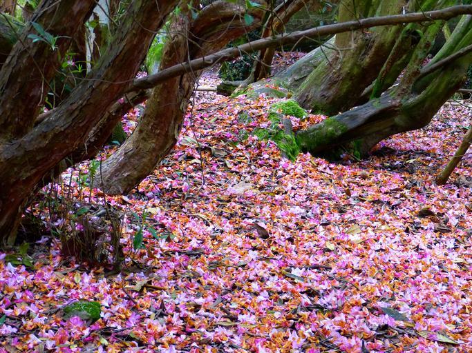 Keywords: petals colorful shades of red rhododendron pink old trees tribe old tree