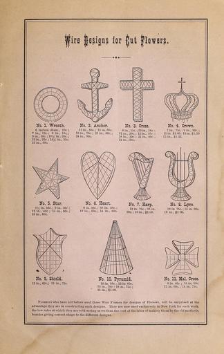 Keywords: Peter Henderson and Co's seed catalogue (16257038767).jpg § t Ignj for ii to or <br> No 1 Wreath <br> 6 inches diam 10c ; <br> 7 in 12c; 8 in 15c; <br> 9 in 18c ;10 f in 20c; <br> 12 in 22c; 13 in 25c <br> 15 in 30c <br> No 2 Anchor <br> 12 in 50c; 15 in 60c <br> 18 in 70c; 21 in 80c; <br> 24 in 90c <br> No 3 Cross <br> 4 Crown <br> 8 in 15c <br> 12 in 20c; <br> 18 in 30c; <br> 24 in 50c <br> 10 in 18c <br> 15 in 25c <br> 21 in 40c <br> 7 in 75c; 9 in 90c; <br> 11 in 1 00; 13 in SI 10 <br> 15 in 1 25 <br> No 5 Star <br> 7 in 26c; 9 in 30c <br> 12 in 40c ; 15 in 50c <br> 18 in 60c <br> No 6 Heart <br> 8 in 30c ; 10 in 40c ; <br> 12 in 50c; 14 in 60c <br> No 7 Harp <br> 12 in 75c ; 15 in <br> 90c; 18 in 1 00 <br> No 8 Lyre <br> 12 in 75c; 15 in 90c <br> 18 in 1 00 <br> No 9 Shield <br> 12 in 60c; 15 in 75c <br> No 10 Pyramid <br> 10 in fiOc ; 12 in 60c <br> 15 in 70c; 18 in 75c; <br> 21 in 1 00 <br> No 11 Mai Cross <br> 8 in 40c ; 10 in 50c <br> 12 in 60c ; 14 in 75c <br> Florists who have not before used these Wire Frames for designs of Flowers will be surprised at the <br> advantage they are in constructing such designs They are now used exclusively in New York for such work <br> the low rates at which they are sold saving more than the cost of thelabor of making them by the old methods <br> besides giving correct shape to the different designs 42671231 135980 68080 Page 87 Text http //www biodiversitylibrary org/page/42671231 1872 10 5962/bhl title 68080 Henry G Gilbert Nursery and Seed Trade Catalog Collection ; Peter Henderson Co Biodiversity Heritage Library Peter Henderson Co's seed catalogue 1872 Garden Stories Catalogs Equipment and supplies Flowers Gardening Peter Henderson Co Plants Ornamental U S Department of Agriculture National Agricultural Library bhl page 42671231 dc identifier http //biodiversitylibrary org/page/42671231 Wire designs for cut flowers bhlGardenStories BHLinbloom peter henderson co plants ornamental u s department of agriculture national agricultural library bhlgardenstories bhlinbloom Information field Flickr posted date ISOdate 2015-02-04 CC-BY-2 0 BioDivLibrary https //flickr com/photos/61021753 N02/16257038767 2015-08-24 05 50 54 cc-by-2 0 PD-old-70-1923 1872 books Peter Henderson Co's seed catalogue Photos uploaded from Flickr by Fæ using a script |