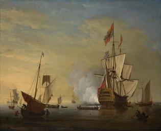 Keywords: Peter Monamy (attrib.) - Harbor scene. An English ship with sails loosened firing a gun.jpg attributed to formerly attributed to Oil canvas in 48 59 institution Metropolitan Museum of Art not on display object history credit line Gift of William P Clyde 1960 Attributed to Monamy in 1973 but this attribution is highly improbable It is far more likely to be by Robert Woodcock accession number 60 94 2 110001550 PD-old-100-1923 Peter Monamy British paintings in the Metropolitan Museum of Art Monamy 17th-century sailing ships in paintings Ships of the line of the Royal Navy 18th-century sailing ships in paintings Paintings of naval battles |