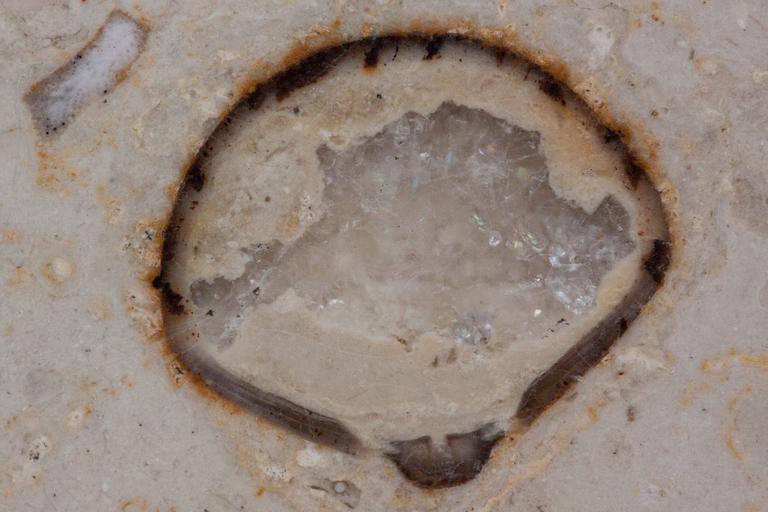 Keywords: petrification fossil shell fossil solnhofen limestone slabs limestone jura polished surface layered deposits sea upper jurassic quarry cream colors ochre yellow macro fund background