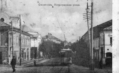 Keywords: Petrogradskaya street in Smolensk.jpg en Petrograd street in Smolensk ru Пет ог адская улица в Смоленске О игинальная отк ытка е установлены before 1917 года PD-RusEmpire 20th-century postcards of Russia Postcards of Smolensk