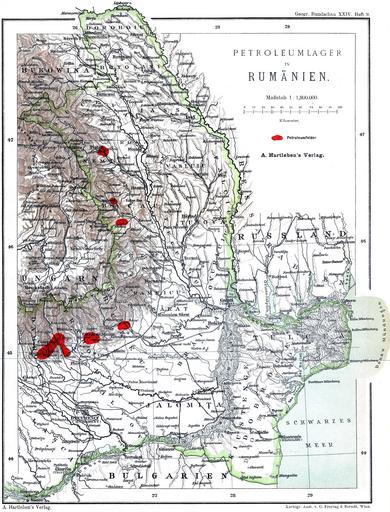 | Keywords: Petroleum in Rumania (1900).JPG The Rumanian oil fields known in 1900 Campos de petróleo rumanos en 1900 Deutsche Rundschau für Geographie und Statistik 1900 own scan PD-old Maps of the Kingdom of Romania Maps in German 1900 in Romania 1900 in economics Petroleum production in Romania Petroleum region maps |