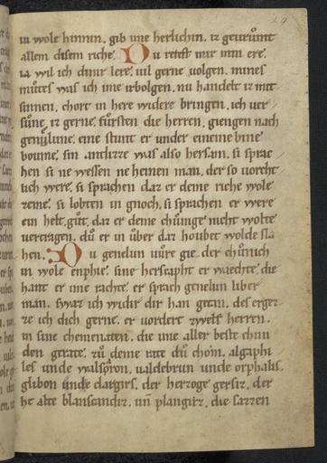 Keywords: Pfaffe Konrad - Rolandslied - cod. pal. germ. 112 - 059.jpg Pfaffe Konrad - Rolandslied - cod pal germ 112 - jpg 058 060 Rolandslied des Pfaffen Konrad à bersetzung bzw Bearbeitung der altfranzösischen Chanson de Roland um 1100 Blatt 29r Pfaffe Konrad Rolandslied Pergament 123 Blatt 21x15 cm Regensburg/Hessen-Thüringen Ende 12 Jahrhundert Cod pal germ 112 Universitätsbibliothek Heidelberg http //diglit ub uni-heidelberg de/diglit/cpg112 century 12 Pfaffe Konrad PD-old Rolandslied Cod Pal germ 112 |