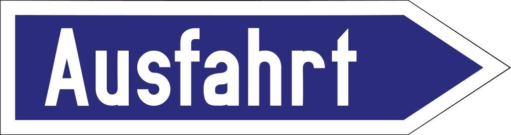 | Keywords: Pfeilschild - Ausfahrt von Bundesautobahnen.svg de Pfeilschild “ Ausfahrt von Bundesautobahnen Diese bereits in gleicher Form während der Vorkriegsjahre aufgstellten Schilder wurden auch noch in den 1950er Jahren von Schildermalern in Handarbeit gefertigt Darum wich die eigentlich genormte Typographie vielfach voneinander ab Die Schildgröße entspricht der Anlage zur technischen Vorschrift Reichsautobahn T-1 Jwkb 286 vom 12 August 1939 Dort wird das Schild als žBild 3 bezeichnet und die Gesamtgröße des Schildes mit 0 82 x 3 13 m angegeben wobei die Pfeilspitze vom äußeren Rand gemessen 9 63 m lang ist Nähere Angaben zur weißen Umrandung oder zur Schriftgröße werden nicht gemacht Die amtliche ultramarinblaue Farbgebung wurde der Farbkarte RAL 840 B 2 entnommen und war 32 h Der durch den RAL deffinierte digitale Farbton wird hier wiedergegeben Nach dem Krieg galten die Reichsautobahn-Vorkriegsbestimmungen noch einige Zeit als Bundesgesetz weiter Siehe oben Interpretiert und gezeichnet durch Mediatus Die hier gezeigte Schriftype ist eine ebenfalls von Mediatus entwickelte Variante aus historischen Zeichen Mediatus 2013-08-29 other fields + Signs User Mediatus/no-new-version Cc-zero PD-Vz historisch German language signs Blue and white signs Diagrams of direction road signs of Germany Diagrams of motorway road signs of Germany 1953 set SVG road signs in Germany |