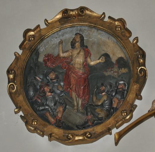 Keywords: Pfullendorf Rosenkranzmedaillon 11.jpg Pfullendorf Stadtkirche St Jakob<br />Rosenkranzmedaillons von Martin Zürn 1615 teilweise um 1900 ersetzt own own photograph 2012-09 Creator Martin Zürn Photo Andreas Praefcke Photos by User AndreasPraefcke Rosenkranzmedaillons Stadtkirche Pfullendorf Reliefs of the Resurrection of Christ |