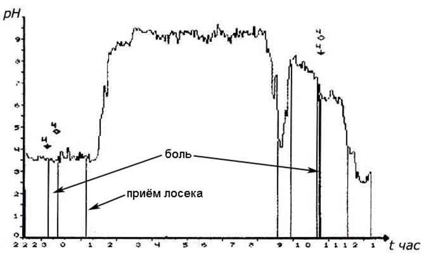 Keywords: PH-gramm with pain and IPP.jpg BadJPEG ru Ф агмент суточной -г аммы у пациента с болью в животе на фоне повышенной кислотности Own Miheev 2008-07-23 Gastroenterology Medical tests