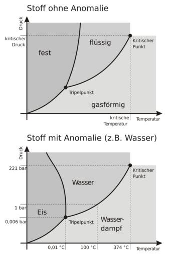 | Keywords: Phasendiagramme.svg Die Abbildung zeigt die schematischen Phasendiagramme eines Stoffes ohne Dichteanomalie oben und des Wassers de File Phasendiagramme png http //resources jwidmer de/wikipedia/Phasendiagramme cdr 2005-01-15 de Benutzer JoWi Phasendiagramme en svg translation possible JoWi Water phase diagrams |