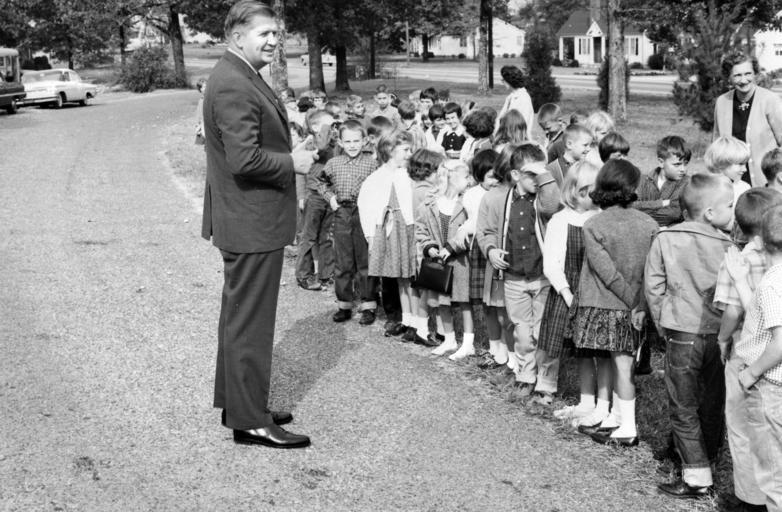 | Keywords: terry sanford terrysanford monochrome blackandwhite outdoor black and white Photo by Lt. Lloyd Burchett of the North Carolina Highway Patrol. From the Raymond Stone Photograph Collection of Governor Terry Sanford's Education Tour, 1962, PhC.136, State Archives of North Carolina, Raleigh, NC. Photo by Lt. Lloyd Burchett of the North Carolina Highway Patrol. From the Raymond Stone Photograph Collection of Governor Terry Sanford's Education Tour, 1962, PhC.136, State Archives of North Carolina, Raleigh, NC. |
