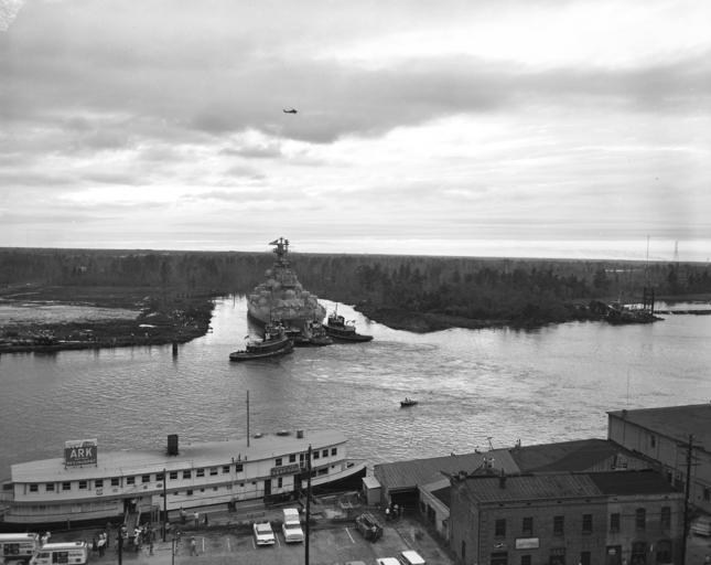 | Keywords: blackandwhite monochrome outdoor black and white Pictured is the USS North Carolina arriving at Wilmington and being maneuvered into her permanent berth. 2 October 1961 From the Pryor Emerson Humphrey Photograph Collection, PhC.180, State Archives of North Carolina, Raleigh, NC. Pictured is the USS North Carolina arriving at Wilmington and being maneuvered into her permanent berth. 2 October 1961 From the Pryor Emerson Humphrey Photograph Collection, PhC.180, State Archives of North Carolina, Raleigh, NC. |
