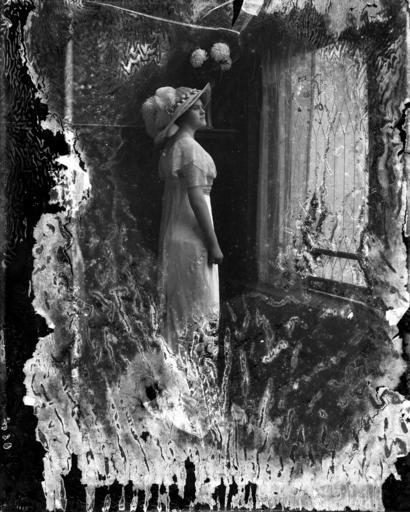 | Keywords: blackandwhite monochrome surreal texture photo border outdoor black and white Full-length portrait of unidentified woman in gown (in Oversize Box 1). No date; estimated 1910 (11"x14" glass plate negative). From the J. C. Knowles Photograph Collection, State Archives of North Carolina, Raleigh, NC. Full-length portrait of unidentified woman in gown (in Oversize Box 1). No date; estimated 1910 (11"x14" glass plate negative). From the J. C. Knowles Photograph Collection, State Archives of North Carolina, Raleigh, NC. |