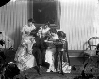 | Keywords: blackandwhite monochrome black and white Meredith College students are seen posing for a group picture. Photograph appears in the 1916 "Oak Leaves" Meredith College yearbook, page 99. c. 1916 (8"x10" glass plate negative).  From the  J. C. Knowles Photograph Collection, State Archives of North Carolina, Raleigh, NC.  Meredith College students are seen posing for a group picture. Photograph appears in the 1916 "Oak Leaves" Meredith College yearbook, page 99. c. 1916 (8"x10" glass plate negative).  From the  J. C. Knowles Photograph Collection, State Archives of North Carolina, Raleigh, NC.   |