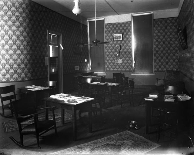 | Keywords: blackandwhite monochrome indoor black and white Reading room of the Maccabee Club located in the Briggs Hardware building, 220 Fayetteville Street; Raleigh, NC. See image of the postcard found by Karl Larson showing this photo -- www.flickr.com/photos/north-carolina-state-archives/14667.... No date; estimated 1910 (8"x10" glass plate negative). From the J. C. Knowles Photograph Collection, State Archives of North Carolina, Raleigh, NC. Reading room of the Maccabee Club located in the Briggs Hardware building, 220 Fayetteville Street; Raleigh, NC. See image of the postcard found by Karl Larson showing this photo -- www.flickr.com/photos/north-carolina-state-archives/14667.... No date; estimated 1910 (8"x10" glass plate negative). From the J. C. Knowles Photograph Collection, State Archives of North Carolina, Raleigh, NC. |