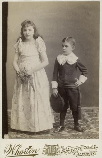 Keywords: people photo border monochrome Mattie Pace Fuller (1879-1953) and Maj. William (Willie) Heck Pace (1883-1940). Grandchildren of Jonathan McGee and Mattie Anna Callendine Heck. Wharton Photo Studio; Raleigh, NC. No date; 1889 (Cabinet Card 4”x6.5”). From the R. Beverly R. Webb Photograph Collection ca. 1880-1900, PhC.19, State Archives of North Carolina, Raleigh, NC. Mattie Pace Fuller (1879-1953) and Maj. William (Willie) Heck Pace (1883-1940). Grandchildren of Jonathan McGee and Mattie Anna Callendine Heck. Wharton Photo Studio; Raleigh, NC. No date; 1889 (Cabinet Card 4”x6.5”). From the R. Beverly R. Webb Photograph Collection ca. 1880-1900, PhC.19, State Archives of North Carolina, Raleigh, NC. |