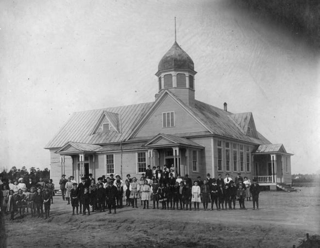 | Keywords: blackandwhite monochrome outdoor building architecture black and white Eureka School, Wayne County, NC; ca 1900-1905. Students and teachers are posed in a group in front of a large frame school house with a bell cupola on the roof. The building bears a strong resemblance to Falling Creek School (PhC_209_1_09). A handwritten ID label is affixed to the mounting card. “A.A. Miller, Goldsboro, N.C.” is embossed on the mounting card. Alexander A. Miller was a photographer active in Goldsboro 1880s-ca 1930. Eureka is a town in northeast Wayne County near Watery Branch. The town name was changed from Saul’s Cross Roads to Eureka in 1901. From the Wayne County Schools Photo Collection, PhC.209, State Archives of North Carolina, Raleigh, NC. Eureka School, Wayne County, NC; ca 1900-1905. Students and teachers are posed in a group in front of a large frame school house with a bell cupola on the roof. The building bears a strong resemblance to Falling Creek School (PhC_209_1_09). A handwritten ID label is affixed to the mounting card. “A.A. Miller, Goldsboro, N.C.” is embossed on the mounting card. Alexander A. Miller was a photographer active in Goldsboro 1880s-ca 1930. Eureka is a town in northeast Wayne County near Watery Branch. The town name was changed from Saul’s Cross Roads to Eureka in 1901. From the Wayne County Schools Photo Collection, PhC.209, State Archives of North Carolina, Raleigh, NC. |