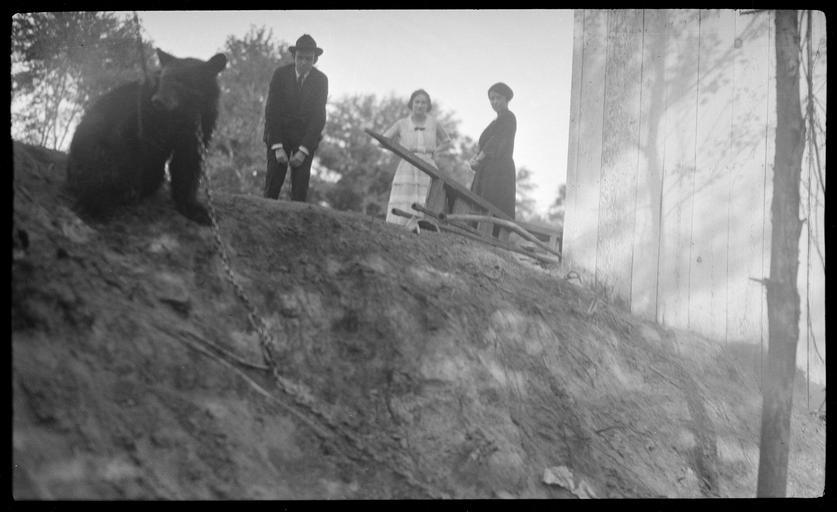 Keywords: blackandwhite monochrome photo border outdoor black and white Mary Shepard Parker (middle), and the principal from the school where she worked as a teacher, and the wife of the principal, with a captive bear cub (saved during a fire and later released), at Arbuckle's Landing, near Wallaceton, Virginia, n.d. From the Surry Parker Photograph Collection, PhC.51, State Archives of North Carolina, Raleigh, NC. Mary Shepard Parker (middle), and the principal from the school where she worked as a teacher, and the wife of the principal, with a captive bear cub (saved during a fire and later released), at Arbuckle's Landing, near Wallaceton, Virginia, n.d. From the Surry Parker Photograph Collection, PhC.51, State Archives of North Carolina, Raleigh, NC. |